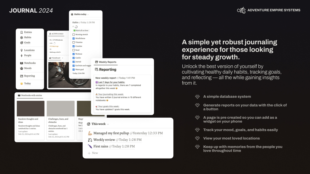 - Journaling with moods and notebooks